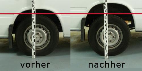 Die Zusatz-Luftfederung entlastet dadurch zu fast 100 % das bestehende Hinterachs-Federnsystem und dämpft optimal. Durch die spezielle 2-Kreisausführung, kann je nach Beladungszustand beide oder die linke oder rechte Seite des Fahrzeuges OPTIMAL ausnivelliert werden!